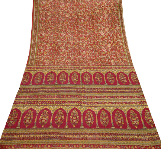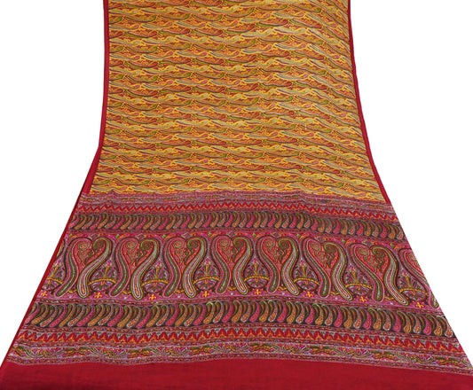 Indian Vintage Sari Red & Yellow Pure Silk Printed Saree Fabric 5yd Sewing Craft Fabric DressMaking Soft