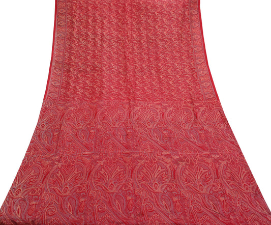 Indian Vintage Sari Red 100% Pure Silk Printed Saree Craft Fabric 6yd Sewing DressMaking Soft Floral Crafting Quilting Upcycle