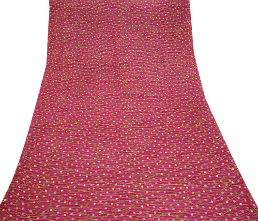 Indian Vintage Sari Rani Pink 100% Pure Silk Woven Printed Sarees Craft Fabric 5yd Sewing Dress Making Floral Upcycle Quilting Crafting Used