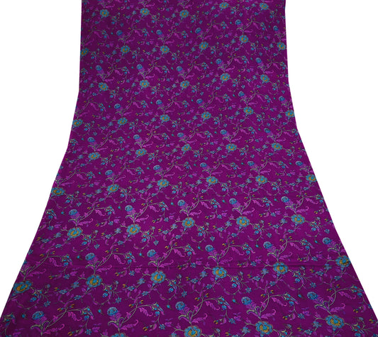 Indian Vintage Sari Purple 100% Pure Silk Printed Sarees 6yd Sewing Craft Fabric Dress Making Soft Wrap Floral Crafting Quilting Upcycle