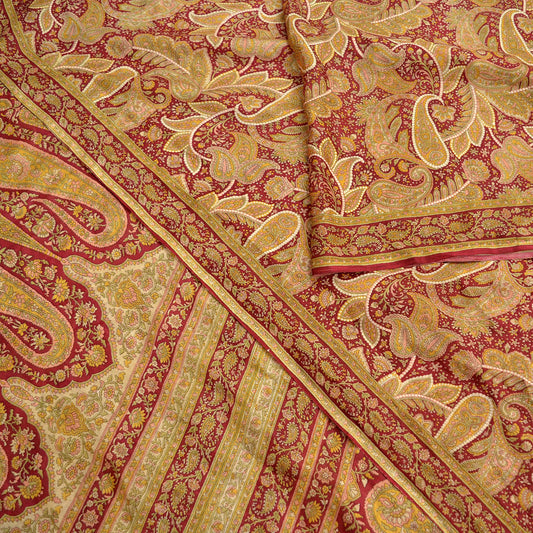 Indian Vintage Sari Dark Red 100% Pure Silk Printed Sarees Craft Fabric 6yard Sewing DressMaking Soft Paisley Crafting Quilting Upcycle