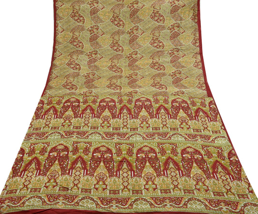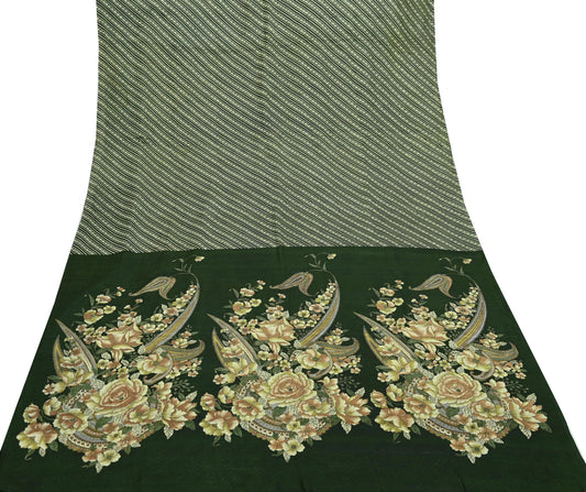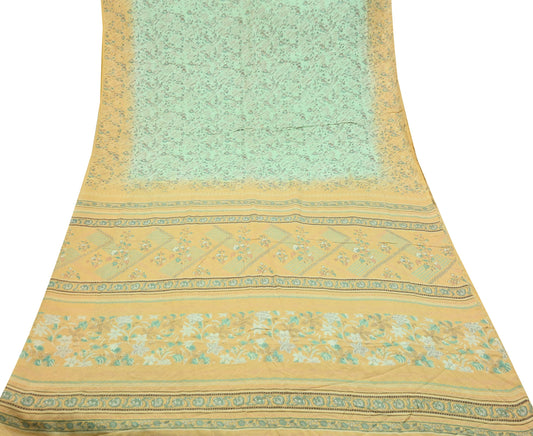 Indian Vintage Sari Green & Beige Pure Silk Printed Sarees Craft Fabric 5yd Sewing Floral Dress Making Soft Crafting Quilting Upcycle