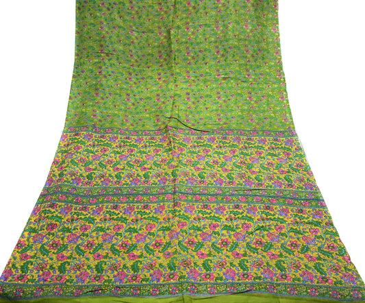 Indian Vintage Sari Green Pure Silk Printed Sarees 5yd Sewing Craft Fabric Dress Making Soft Floral Wrap Upcycle Used Quilting Crafting