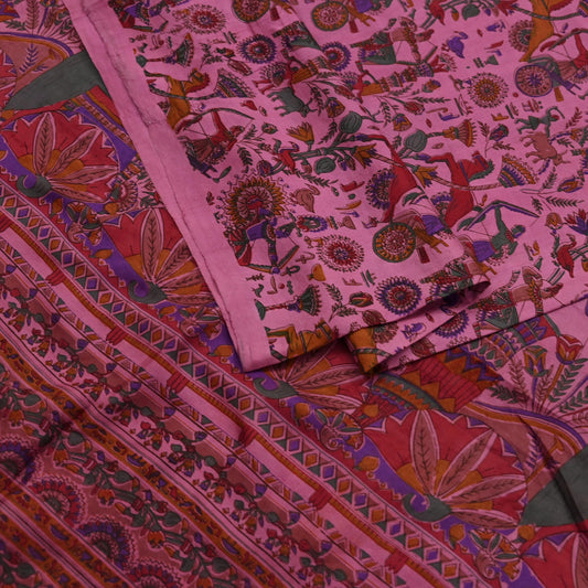 Indian Vintage Sari Pink & Green Pure Silk Printed Sarees 5yd Sewing Craft Fabric Dress Making Soft Floral Ethnic Quilting Crafting