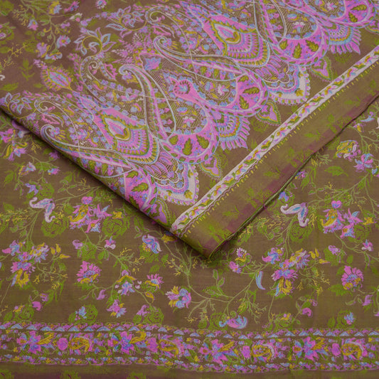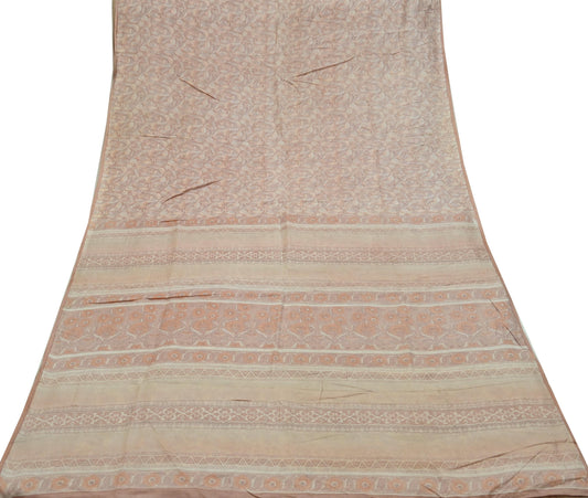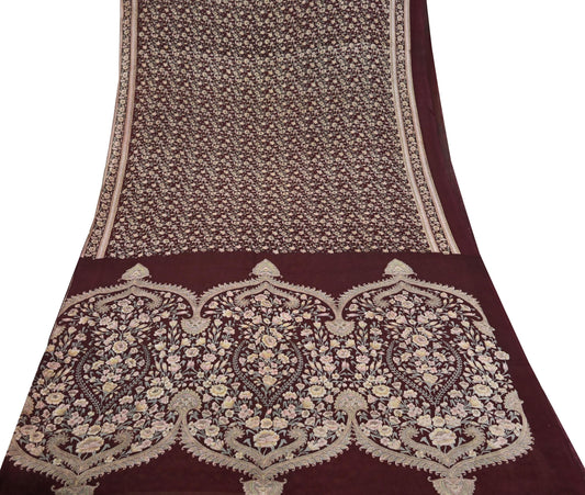 Indian Vintage Sari Brown 100% Pure Silk Printed Saree Craft Fabric 5yd Sewing DressMaking Wrap Floral Crafting Quilting Used