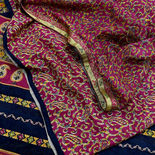 Indian Vintage Sari Purple & Blue Pure Silk Printed Sarees 6yd Sewing Craft Fabric Dress Making Wrap Boho Upcycle Quilting Crafting Zari