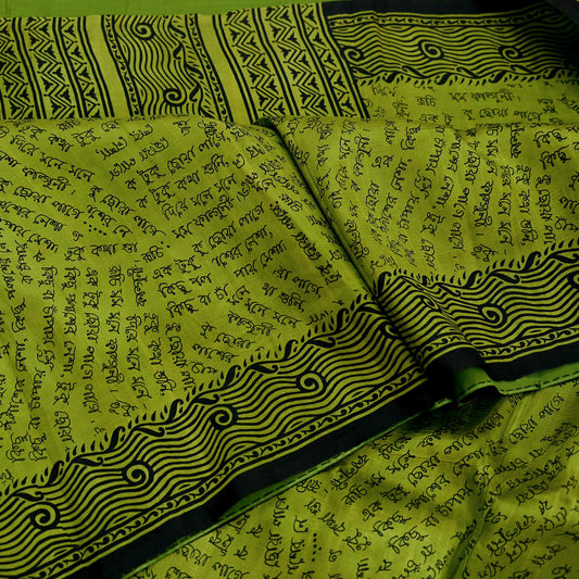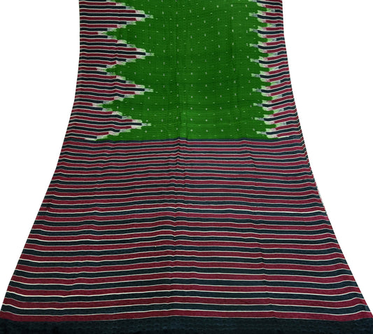 Indian Vintage Sari Green Pure Silk Printed Sarees 6yd Sewing Craft Fabric Dress Making Soft Abstract Wrap Upcycle Used Quilting Crafting