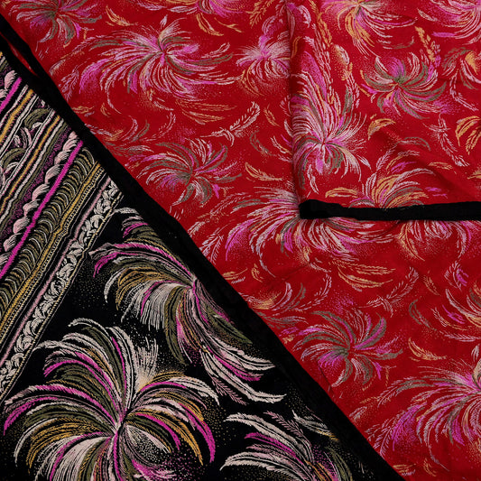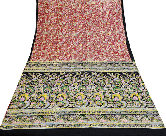 Indian Vintage Sari Black & Red Pure Silk Printed Sarees 5yd Sewing Craft Fabric Dress Making Soft Quilting Crafting Upcycle Used Floral