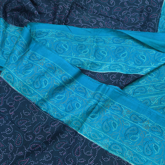 Indian Vintage Sari Blue Pure Silk Bandhani Printed Sarees Fabric 6yd Floral Sewing Traditional Culture Sari Ethnic Fabric