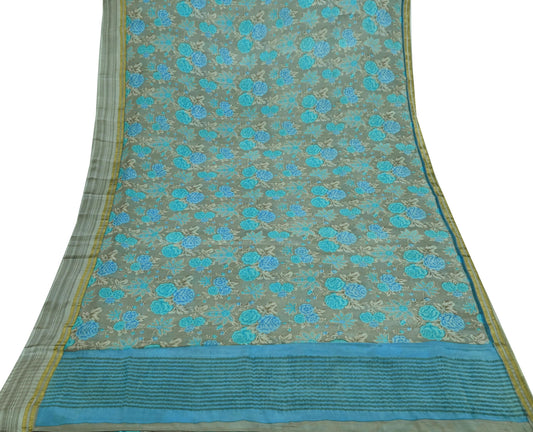 Indian Vintage Sari Blue & Gray Pure Silk Printed Sarees 5yd Sewing Craft Fabric Dress Making Wrap Floral Zari Quilting Crafting Upcycle
