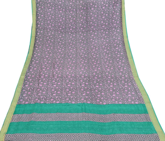 Indian Vintage Sari Gray & Pink 100% Pure Silk Printed Sarees Craft Fabric 5yd Sewing DressMaking Floral Crafting Quilting Upcycle