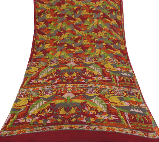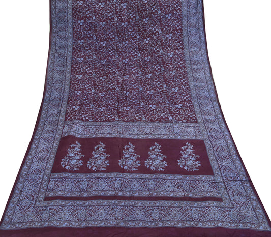 Indian Vintage Sari Maroon 100% Pure Silk Printed Sarees 5yd Craft Fabric Sewing Soft Dress Making Floral Quilting Crafting Upcycle Used
