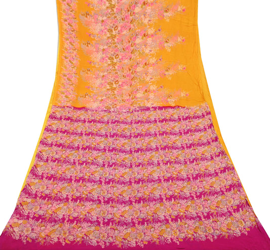 Indian Vintage Sari Saffron & Pink 100% Pure Silk Printed Sarees 5yd Sewing Craft Fabric DressMaking Soft Floral Quilting Crafting Upcycle