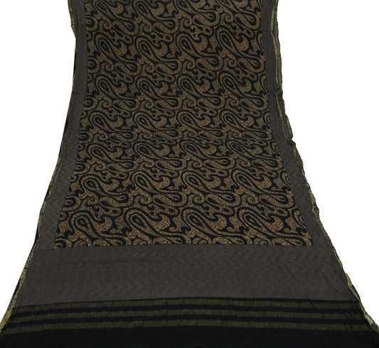 Indian Vintage Sari Black & Green 100% Pure Silk Printed Sarees Craft Fabric 5yd Sewing Dress Making Crafting Quilting