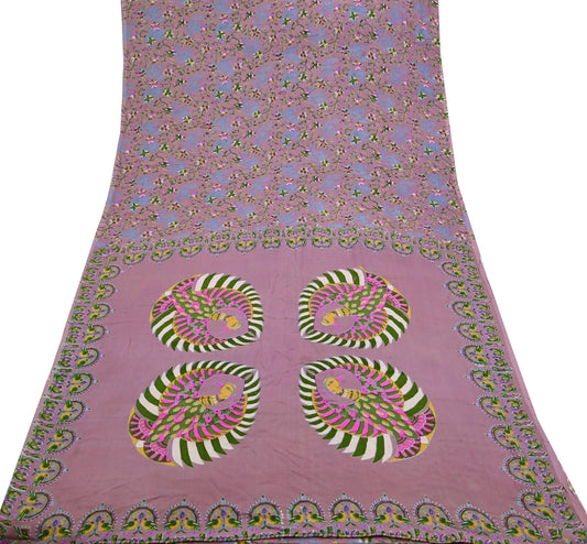 Indian Vintage Sari Purple 100% Pure Silk Printed Saree Fabric 5yd Sewing Craft Fabric DressMaking Soft Wrap Quilting Crafting Upcycle