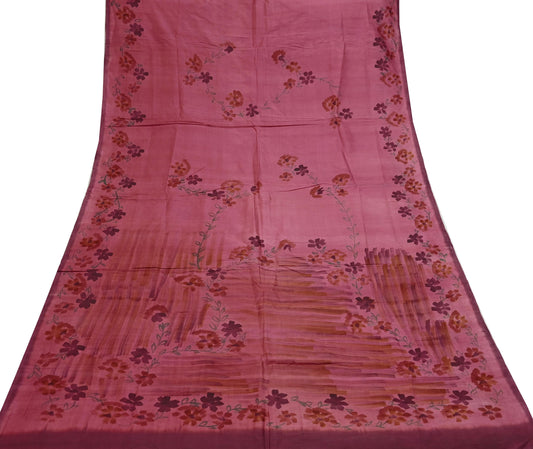 Indian Vintage Sari Pink Pure Silk Printed Sarees 5yd Sewing Craft Fabric Dress Making Soft Wrap Floral Crafting Quilting Upcycle