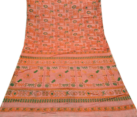Indian Vintage Sari Orange 100% Pure Silk Printed Sarees 5yd Sewing Craft Fabric Zari Dress Making Soft Wrap Quilting Used Crafting Upcycle
