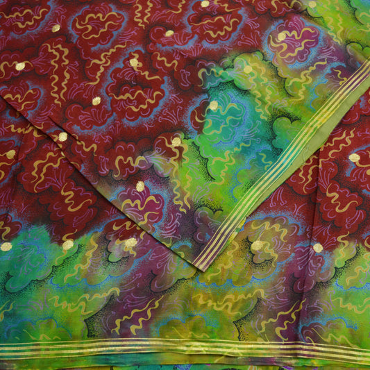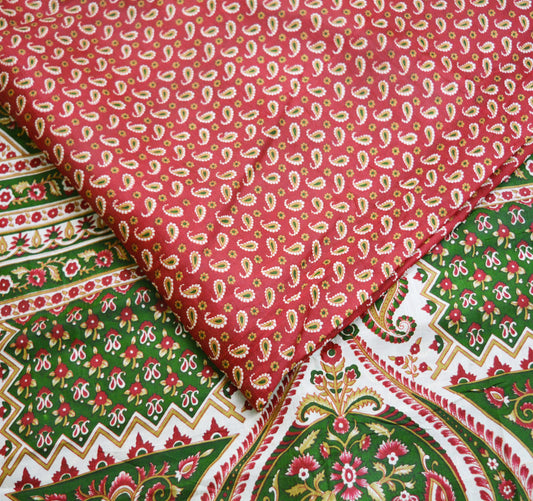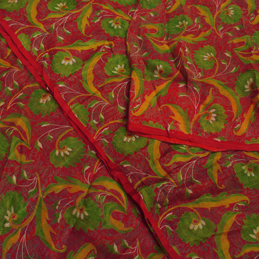 Indian Vintage Sari Red & Green Pure Silk Printed Saree Fabric 5yard Sewing Craft Fabric DressMaking Wrap