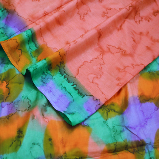 Indian Vintage Sari Orange & Peach 100% Pure Silk Tie-dye Printed Saree Fabric 6yd Sewing Craft Fabric DressMaking