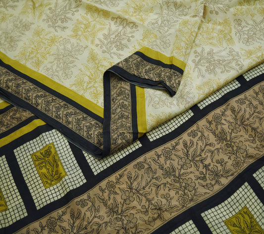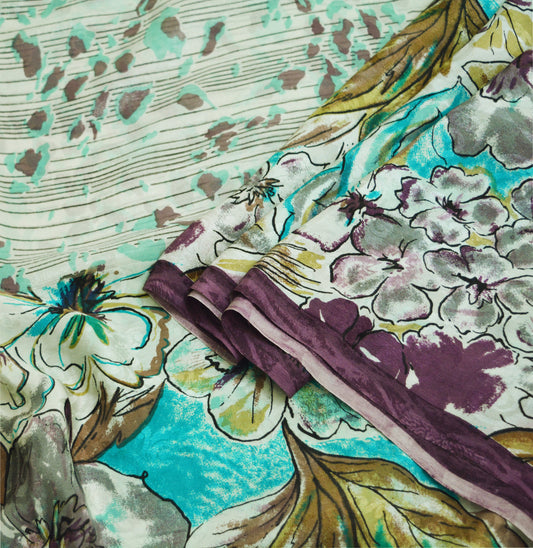 Indian Vintage Sari Cream Pure Silk Printed Saree Fabric 5yard Sewing Craft DressMaking Soft Floral