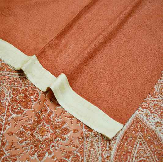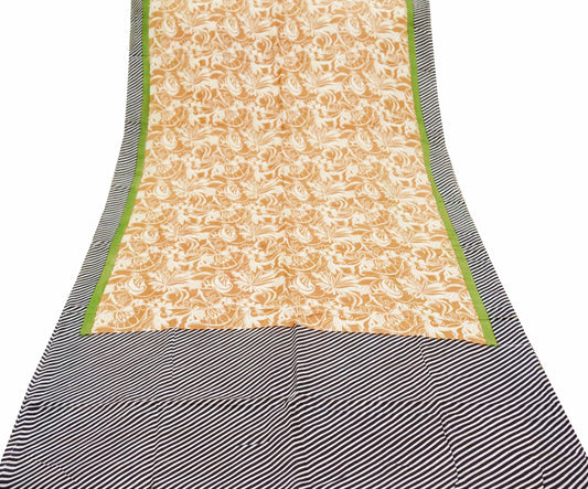 Vintage Sari Ivory & Orange Pure Silk Printed Saree Fabric 6yard Sewing Peacock Soft Dress Designing for Crafting