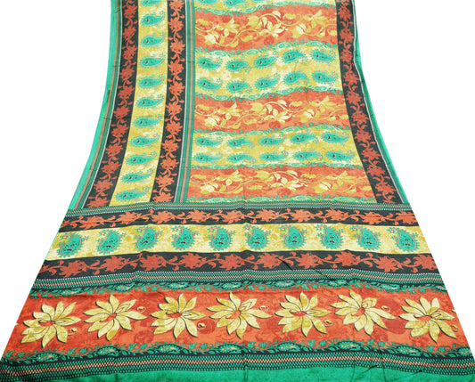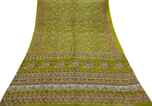 Indian Vintage Sari Green Pure Silk Printed Saree Fabric 6yd Sewing Craft DressMaking Soft Floral Design