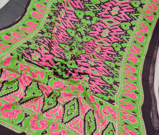 Indian Vintage Sari Black & Green 100% Pure Silk Printed Saree 5yd Sewing Craft Fabric Dress Making Soft Bird Crafting Quilting Upcycle