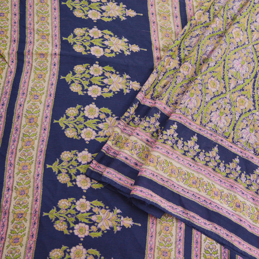 Indian Vintage Sari Deep Blue Pure Silk Printed Saree Fabric 6yard Sewing Craft DressMaking Soft Floral