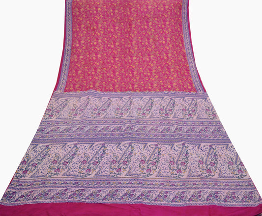 Indian Vintage Sari Pink & Blue 100% Pure Silk Printed Saree Fabric 5yard Sewing Craft DressMaking Soft Floral Zari