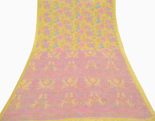 Indian Vintage Sari Yellow Pure Silk Printed Sarees 6yd Sewing Craft Fabric Dress Making Soft Zari Crafting Quilting Upcycle Paisley