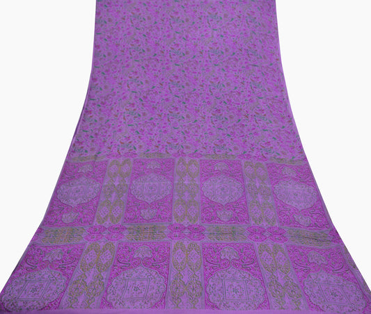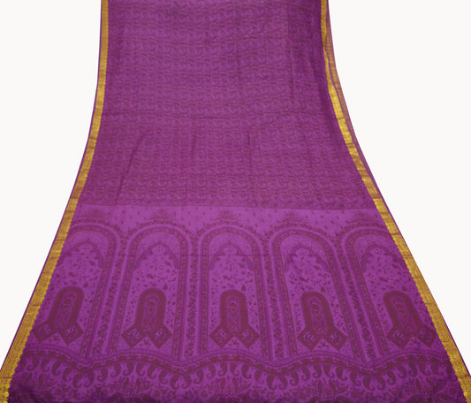 Indian Vintage Sari Purple 100% Pure Silk Printed Sarees 6yd Sewing Craft Fabric Zari Dress Making Soft Quilting Used Crafting Upcycle