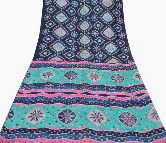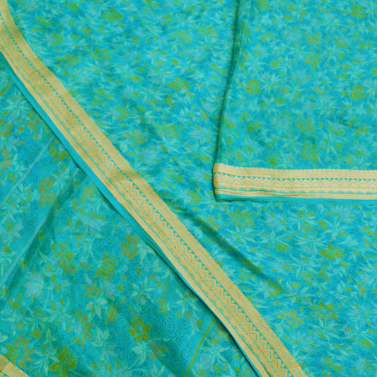 Indian Vintage Sari Green & Blue 100% Pure Silk Printed Sarees 5yd Sewing Craft Fabric Dress Making Soft Wrap Dress Making Quilting Crafting