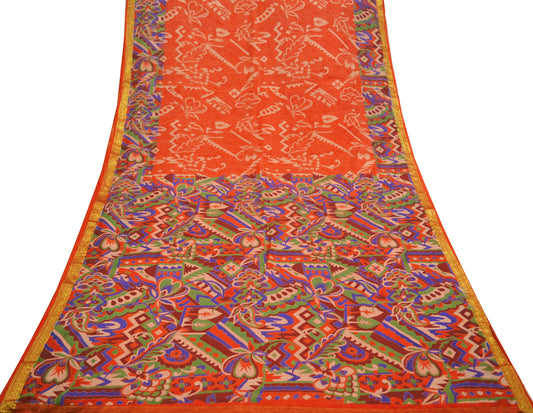 Indian Vintage Sari Orange 100% Pure Silk Printed Sarees 6yd Sewing Craft Fabric Zari Dress Making Soft Wrap Quilting Used Crafting Upcycle