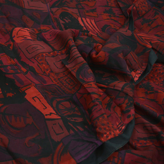 Indian Vintage Sari Black & Red Pure Silk Printed Sarees 5yd Sewing Craft Fabric Dress Making Soft Quilting Crafting Upcycle Used Abstract