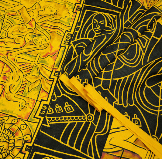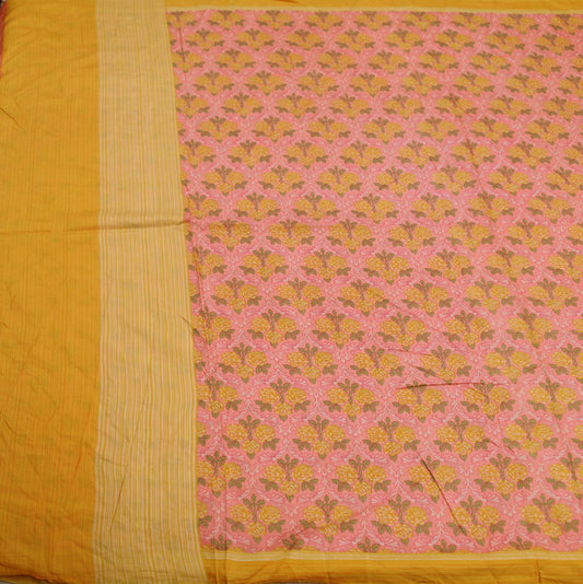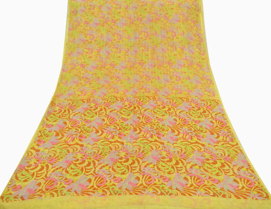 Indian Vintage Sari Yellow Pure Silk Printed Saree 6yd Sewing Craft Fabric DressMaking Soft