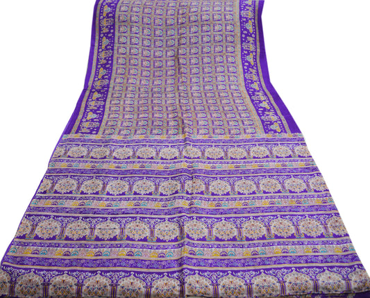 Indian Vintage Sari Purple Pure Silk Printed Saree Fabric 5yard Sewing Craft DressMaking Humans Floral