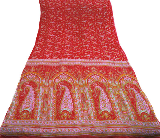 Indian Vintage Sari Red Pure Silk Printed Saree Fabric 6yard Sewing Craft Fabric DressMaking Soft Wrap Paisley