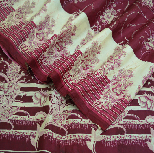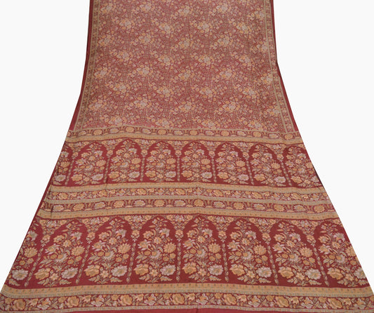 Indian Vintage Sari Maroon 100% Pure Silk Printed Sarees 6yd Craft Fabric Sewing Soft Dress Making Floral Quilting Crafting Upcycle Used