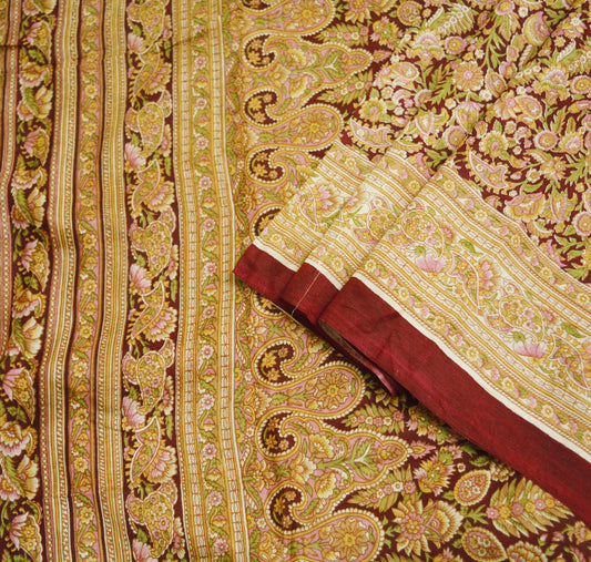 Indian Vintage Sari Maroon 100% Pure Silk Printed Saree Fabric 6yard Sewing Craft DressMaking Soft Paisley