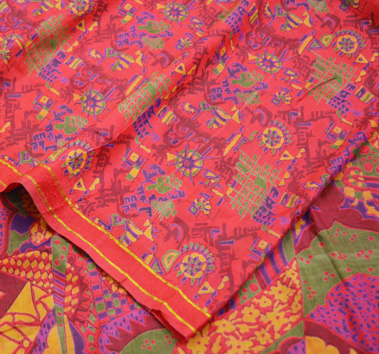 Indian Vintage Sari Red & green Pure Silk Warli Printed Saree Craft Fabric 5Yard Soft Dress making Sewing fabric