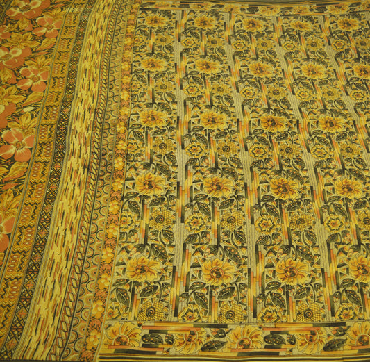 Indian Vintage Sari Yellow Pure Silk Printed Sarees 6yd Sewing Craft Fabric Dress Making Soft Quilting Crafting Upcycle Used Floral