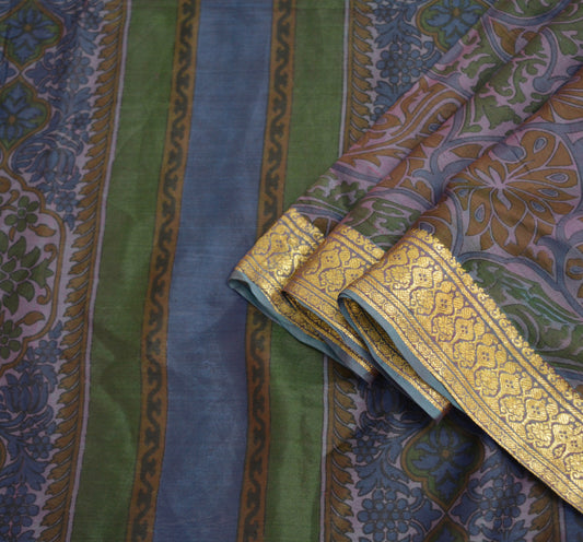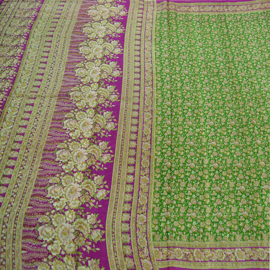 Indian Vintage Sari Purple & Green Pure Silk Printed Saree 5yd Sewing Quilting Craft Fabric Dress Making/ Designing Soft Upcycle Used Floral