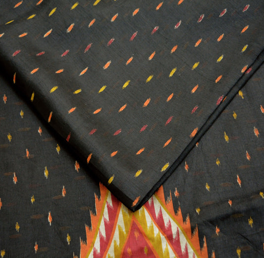 Indian Vintage Sari Brown & Black Pure Silk Printed Saree 5yd Sewing Craft Fabric DressMaking Soft