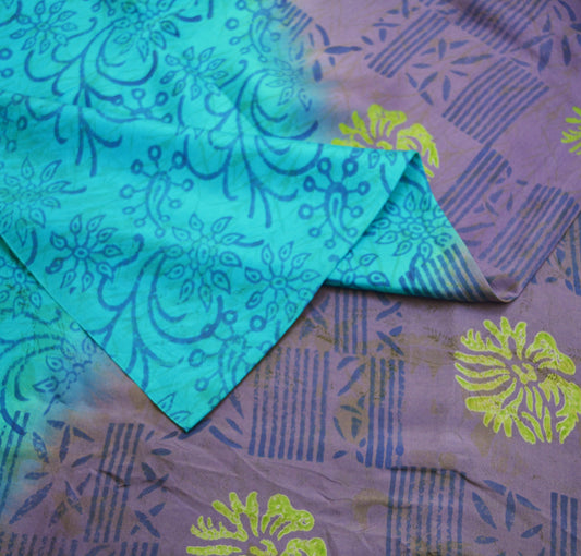Indian Vintage Sari Purple & Blue Pure Silk Printed Saree Fabric 6yd Sewing Craft Fabric DressMaking Floral