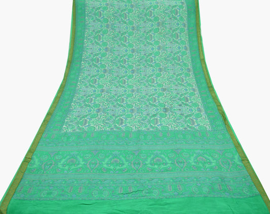 Vintage Green Sari 100% Pure Silk Hand Woven/Printed Sarees Fabric 6yard Sewing Soft Dress Designing Crafting