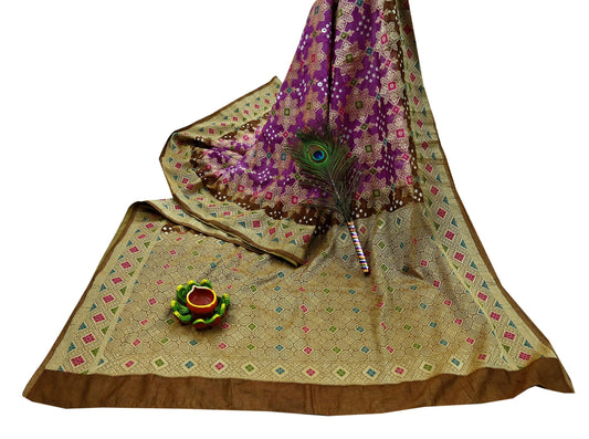 Indian Vintage Sari Purple & Green Artificial Silk Hand Woven Bandhani Sarees 5yd Ethnic Craft Fabric Sewing Wedding Dress making Crafting