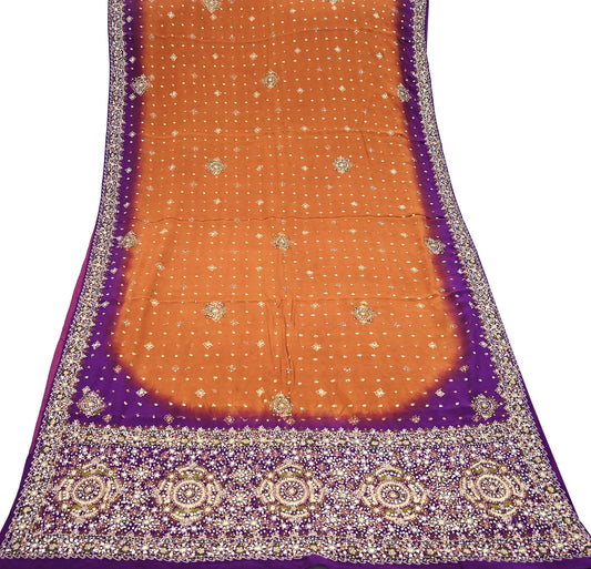 Indian Vintage Heavy Sarees Purple & beige Pure Georgette Silk Hand Embroidered Sari Fabric 5Yd Sewing Ethnic Zardozi zari Wedding sarees