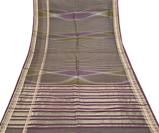 Indian Vintage Sari Green & Purple Pure Organza Silk Hand Woven Sarees 5Yd Zari Border Ethnic Craft Fabric Bollywood Sarees Crafting Upcycle
