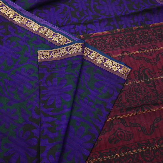 Indian Vintage Sari Green & Purple Printed 100% Pure Cotton Sarees Craft Fabric 5Yd Sewing Sarong Wrap Boho Quilting Crafting zari border