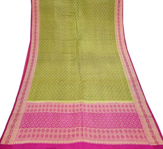 Indian Vintage Sari Purple & Green Heavy Pure Satin Silk Woven Banarasi Tanchoi Saree 5Yd Ethnic Craft Fabric Upcycle Bridal Heavy Sarees